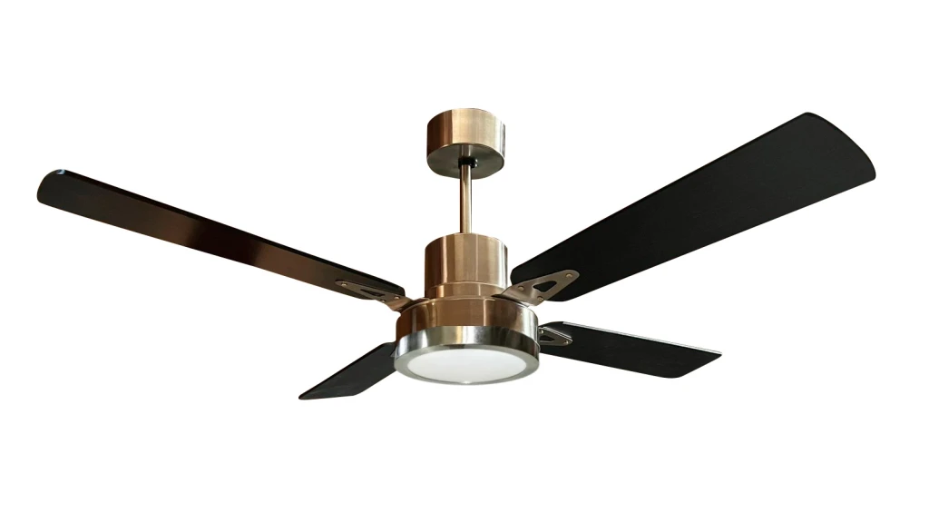 Ventilador de techo platil 4 palas negras madera (Mdf) + plafon led platil 18w luz cálida